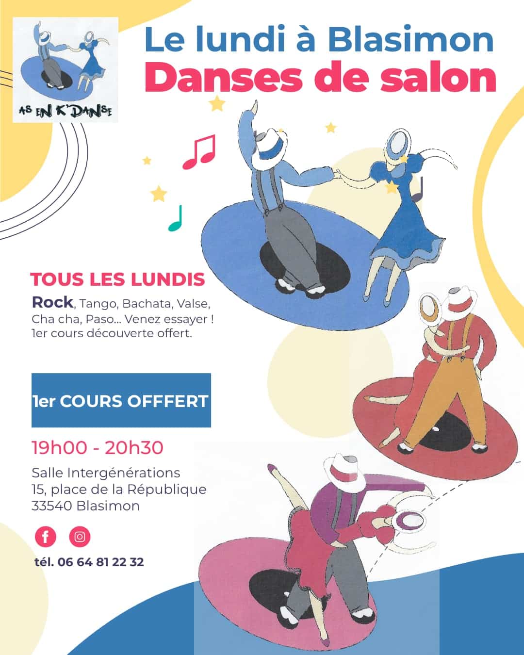 L’association blasimonaise As en K’Danse vous propose des cours de danses de salon tous les lundis à 19h00.