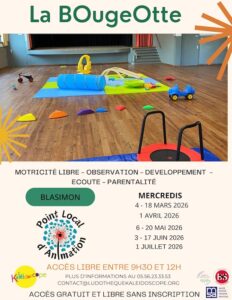 Pour participer à une action, demandez votre adhésion gratuitement au Point Local d’Animation en contactant Mme Sarah Petit au : 05 57 28 06 61 / 07 49 28 81 78 ou pla@blasimon.fr